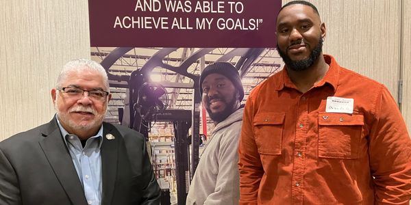 Orlando G. speaks to the crowd at the 2023 CDSA Legislative Breakfast on Friday, January 26th, about his employment journey and how EXCEED has helped him realize his dream.